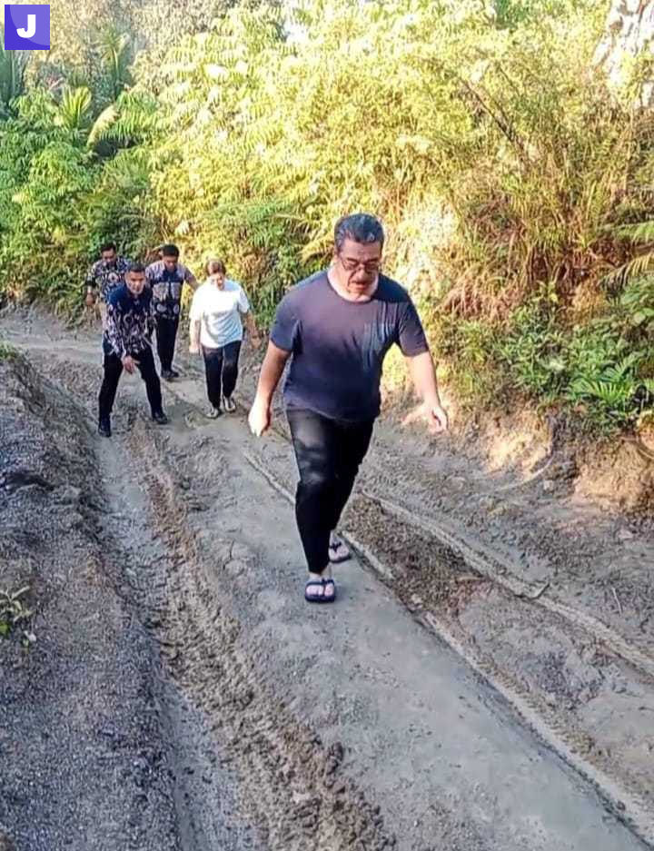 Di tengah perjalanan itu, HL memilih berhenti. Ia turun dari kendaraan. Bersama istrinya, HL berjalan kaki hampir 300 meter, menapaki lumpur, batu, dan lubang yang selama ini menjadi keseharian warga. Langkah demi langkah terasa berat. Bukan hanya bagi kaki, tetapi juga bagi hati. Setiap langkah seolah memindahkan rasa sakit itu ke tubuhnya sendiri.