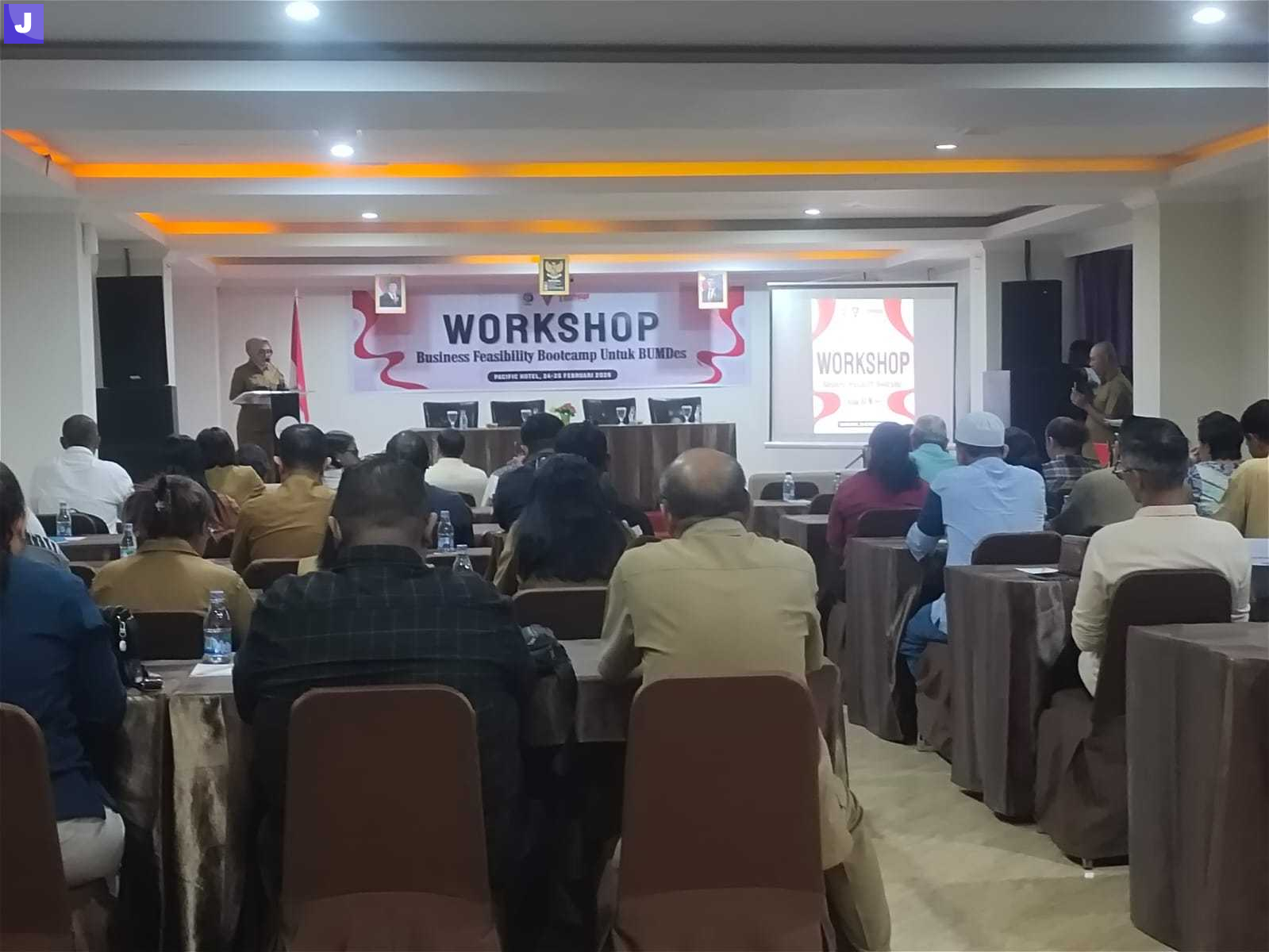 Ambon, JejakInfo.id — Suasana Ballroom Hotel Pacific Place Ambon mendadak berbeda. Puluhan kepala desa dan ketua Badan Usaha Milik Desa (BUMDes) se-Kota Ambon duduk serius, membuka catatan, berdiskusi, bahkan berdebat. Selama dua hari, 24–25 Februari 2026, mereka tidak sedang menghadiri seremoni biasa, melainkan ditempa dalam “Workshop Business Feasibility Bootcamp untuk BUMDes”.