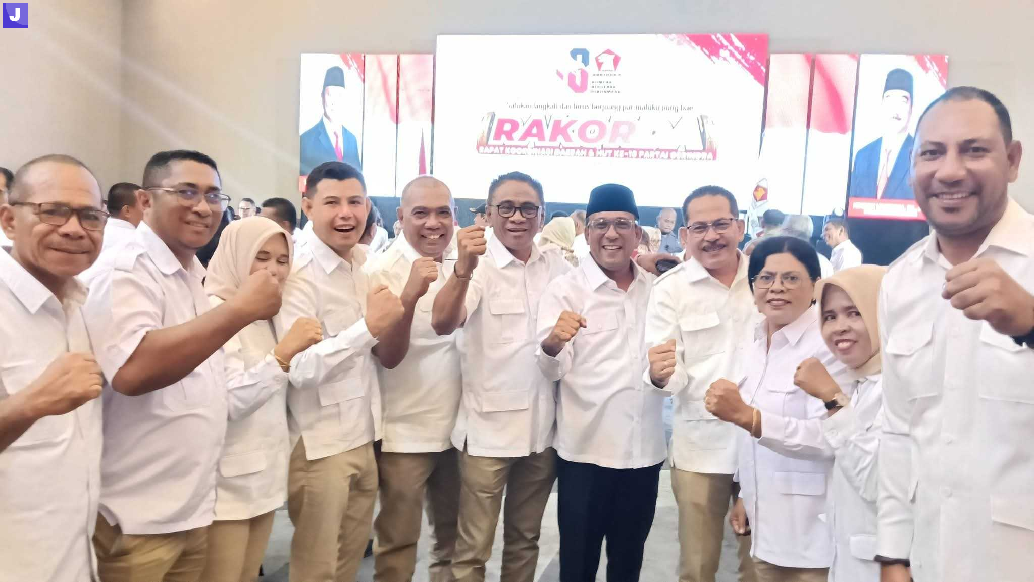 Di lantai V, Ballroom Santika dipenuhi ratusan elite dan kader Partai Gerindra dari seluruh Maluku. Mereka tidak datang hanya untuk duduk dan mendengar pidato seremonial.