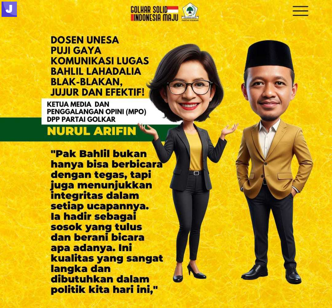 JAKARTA, JEJAKINFO.ID – Ketua Media dan Penggalangan Opini (MPO) Partai Golkar Nurul Arifin merespons positif penilaian dari kalangan akademisi terkait gaya komunikasi politik Menteri Energi dan Sumber Daya Mineral (ESDM) sekaligus Ketua Umum DPP Partai Golkar Bahlil Lahadalia.
