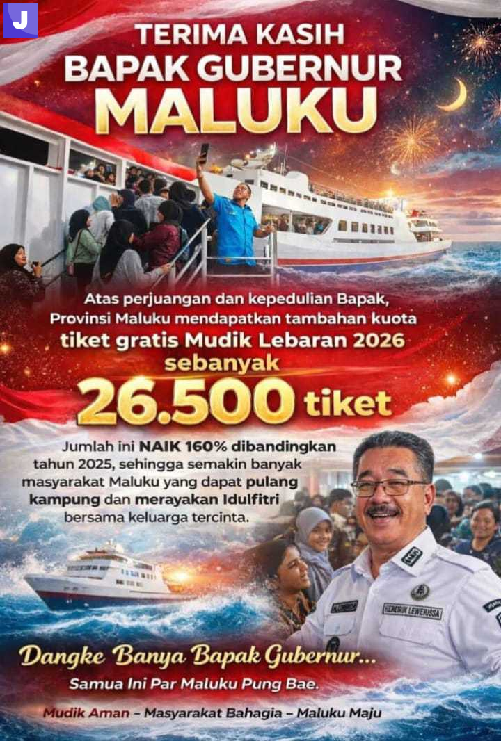 Pada tahun 2025, kuota tiket gratis bagi masyarakat Maluku tercatat sekitar 10.604 tiket. Sementara pada tahun 2026 meningkat menjadi sekitar 14 ribu tiket, atau naik kurang lebih 40 persen.
