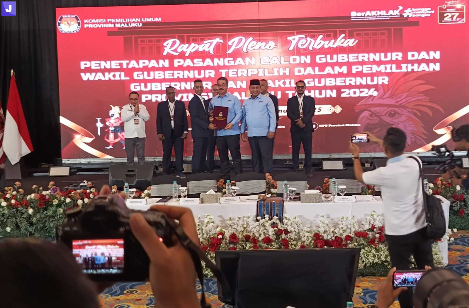 Rapat Pleno Terbuka Penetapan Pasangan Calon Gubernur dan Wakil Gubernur Terpilih Dalam Pemilihan Gubernur dan Wakil Gubernur Provinsi Maluku Tahun 2024 berlangsung di The Natsepa Hotel, Kamis (9/1/2025), sekira pukul 21.00 Wit.