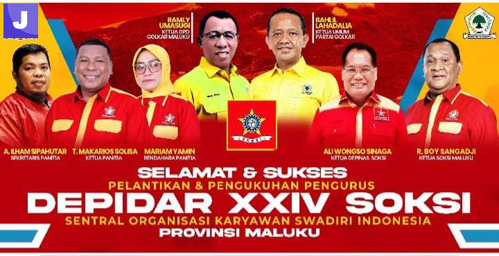JEJAKINFO.ID – Dijadwalkan, Senin (24/2/2024), pekan ini, Dewan Pimpinan Daerah Sentral Organisasi Karyawan Swadiri Indonesia (DEPIDAR SOKSI) Provinsi Maluku periode 2024–2029 dilantik.