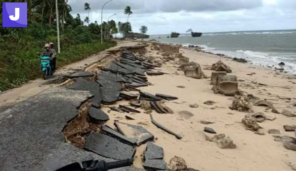 Menurutnya, hal itu turut memengaruhi kondisi abrasi. Ke depan, pasir akan dikembalikan ke pantai, sementara material timbunan akan diambil dari lokasi lain agar struktur jalan dan talud lebih kokoh serta tidak memicu pengikisan lanjutan.