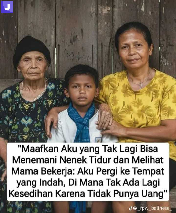 Jakarta, JejakInfo.id — Sebuah foto dan narasi memilukan kembali viral di jagat maya, menampar wajah dunia pendidikan Indonesia. Dalam foto tersebut, terlihat potret keluarga sederhana: seorang nenek, seorang ibu, dan seorang anak laki-laki berseragam sekolah dasar dengan tatapan kosong. Namun, bukan kehangatan keluarga yang menjadi sorotan, melainkan pesan perpisahan yang menyayat hati yang disematkan pada gambar tersebut.